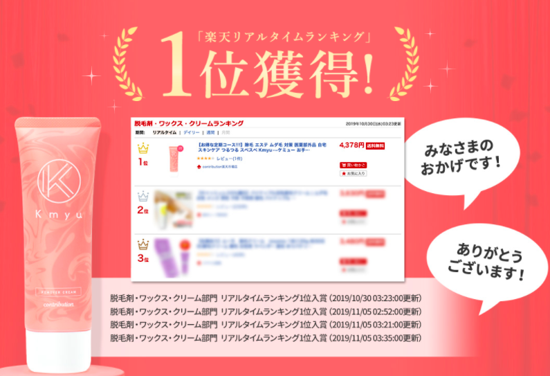 1回だけの利用であっても、いつでも解約が可能って、ケミューの除毛効果と使い心地にすごい自信を持って販売してますよね♪